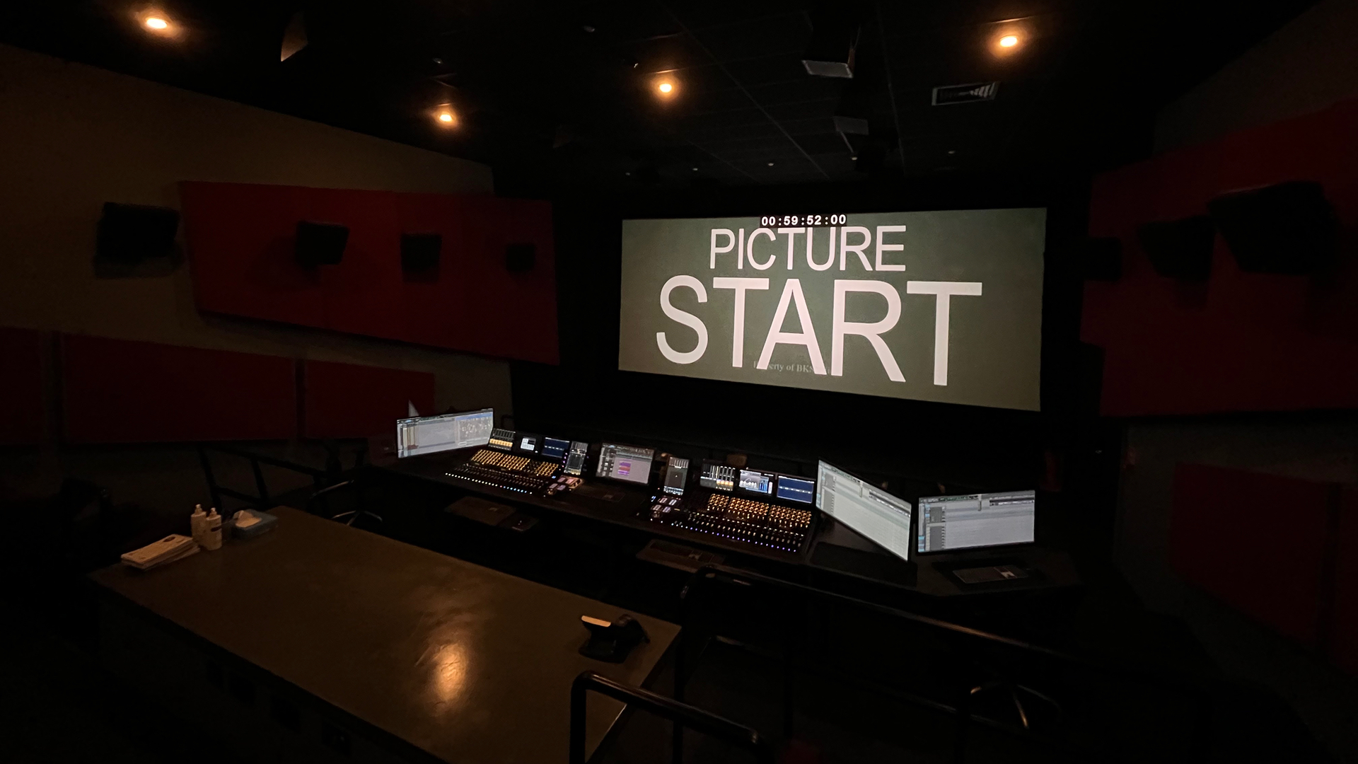 The Dolby Certified mix stage features a 43 speaker Dolby Atmos system, an 8 Metre wide screen and can accommodate up to 30 people.